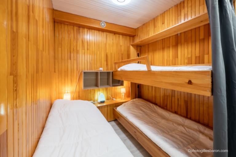 - Un coin montagne composé de trois lits simples dont un en mezzanine .Attention le lit supérieur ne doit pas être utilisé par un enfant de moins de 6 ans.